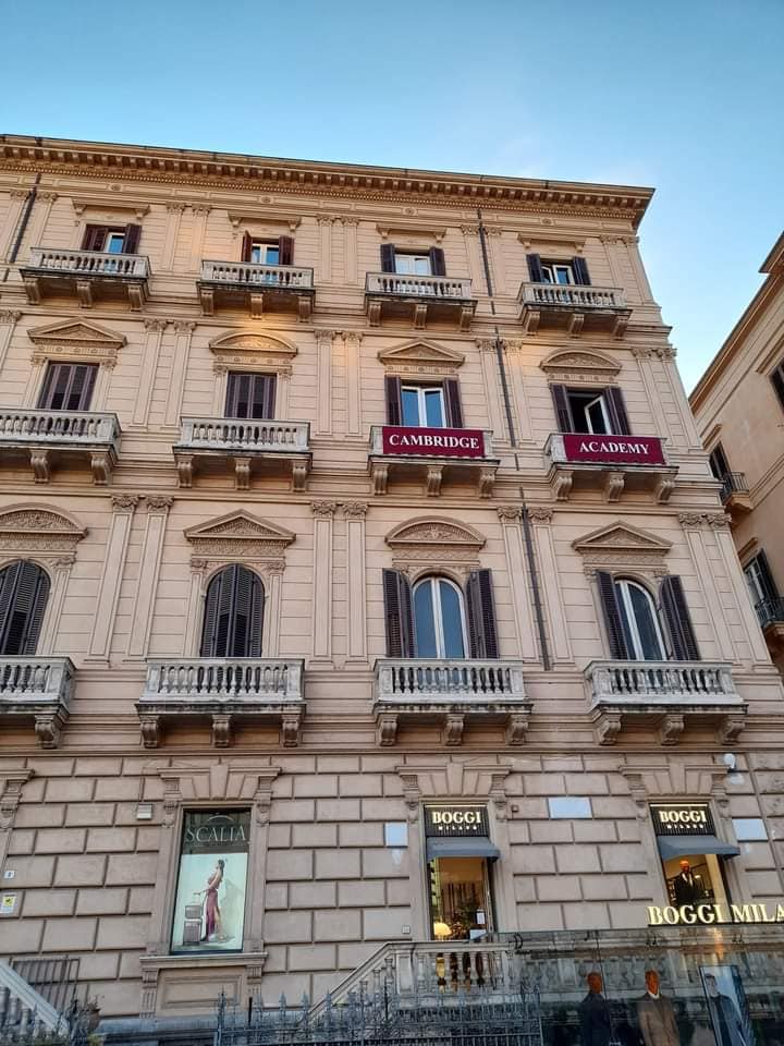 Fin dall’anno della sua fondazione nel 1965, Cambridge Academy è sita in un ampio ed arioso appartamento al secondo piano di Palazzo Agnello- Briuccia - piazza Castelnuovo, 50, angolo via Libertà, uno stabile di riconosciuto interesse storico- artistico a due passi dal Teatro Politeama.